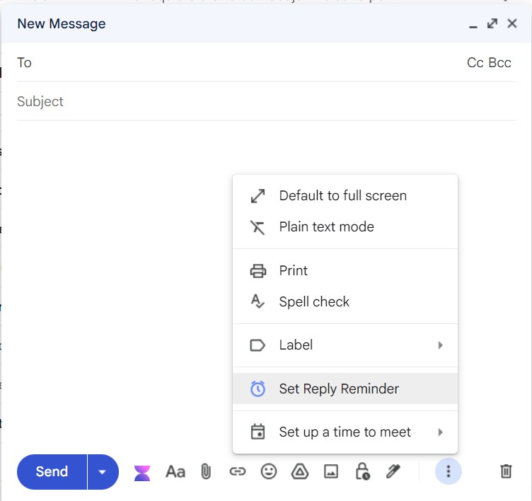 Set reply reminders while you write. If no one replies by your chosen time, your email jumps back to the top of your inbox so you can follow up.
