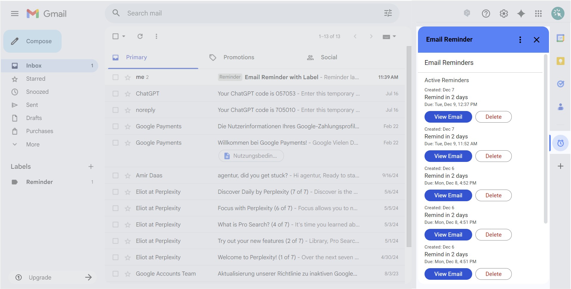 Email Reminder for Gmail™